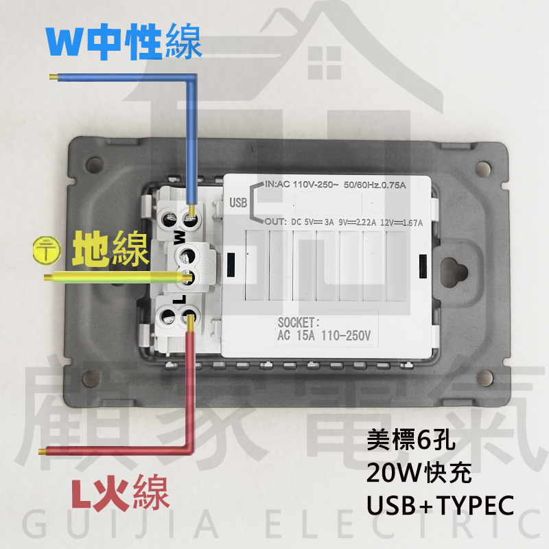 美標6孔20W快充-USBTYPEC