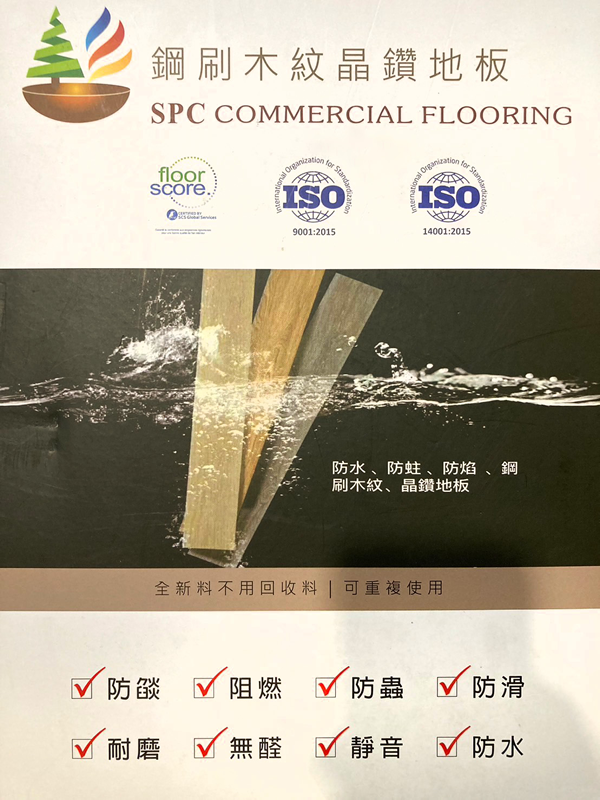 防焰、阻燃、防蟲、防滑、耐磨、無醛、靜音、防水、防蛀、鋼刷木紋、晶鑽地板